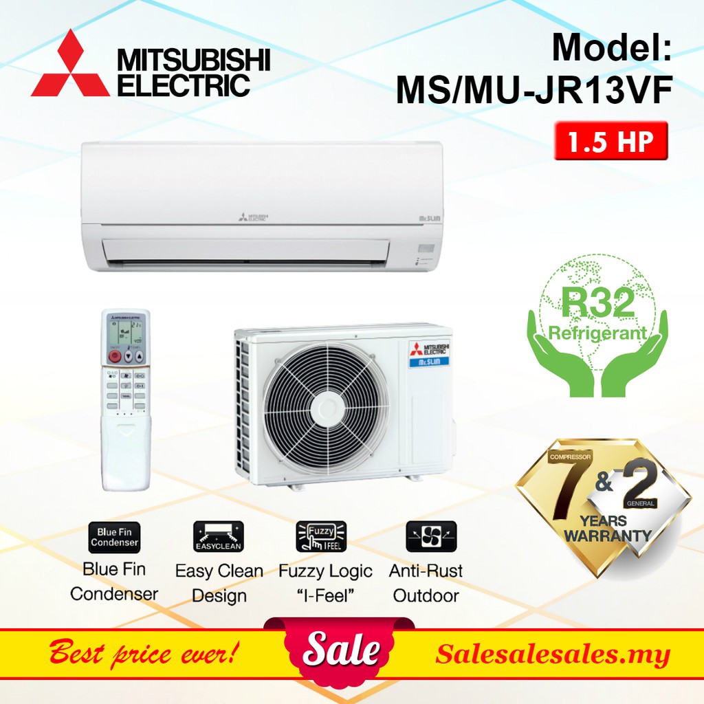 R32 Mitsubishi 1 5hp Air Conditioner R32 Non Inverter Wall Aircond Ms Jr13vf Mu Jr13vf Penghawa Dingin Shopee Malaysia
