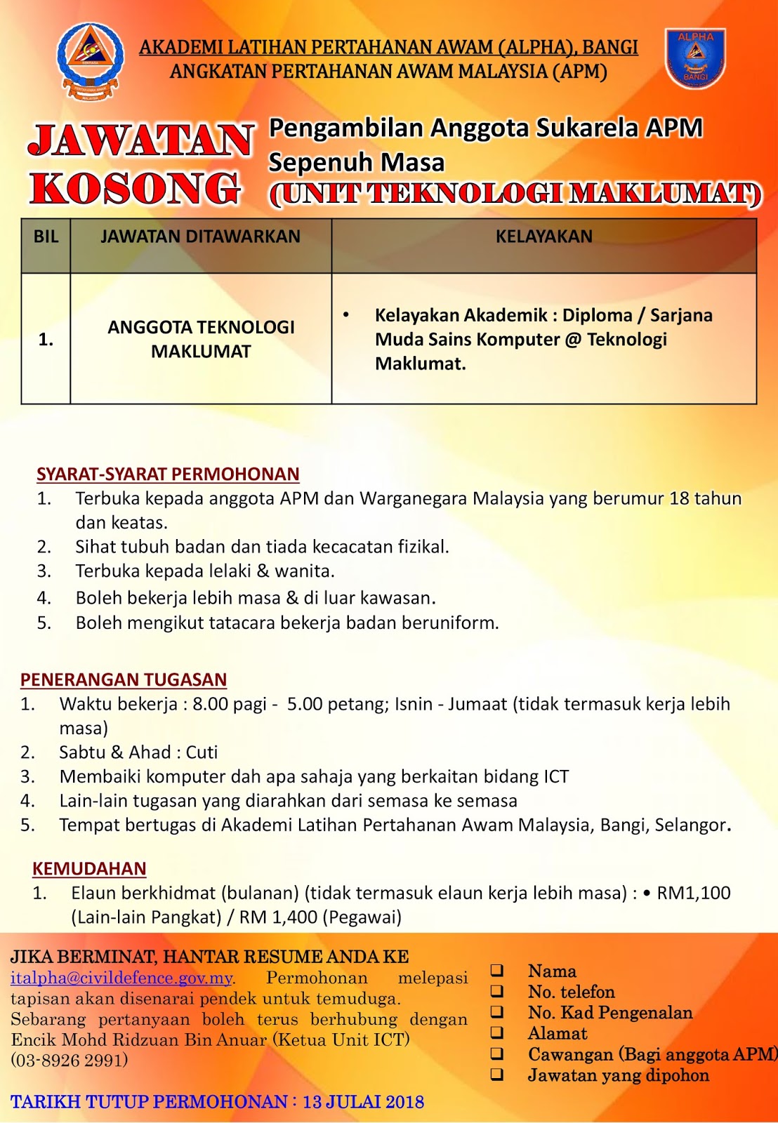 Permohonan Jawatan Akademi Latihan Pertahanan Awam Alpha Aku Budak Trolak