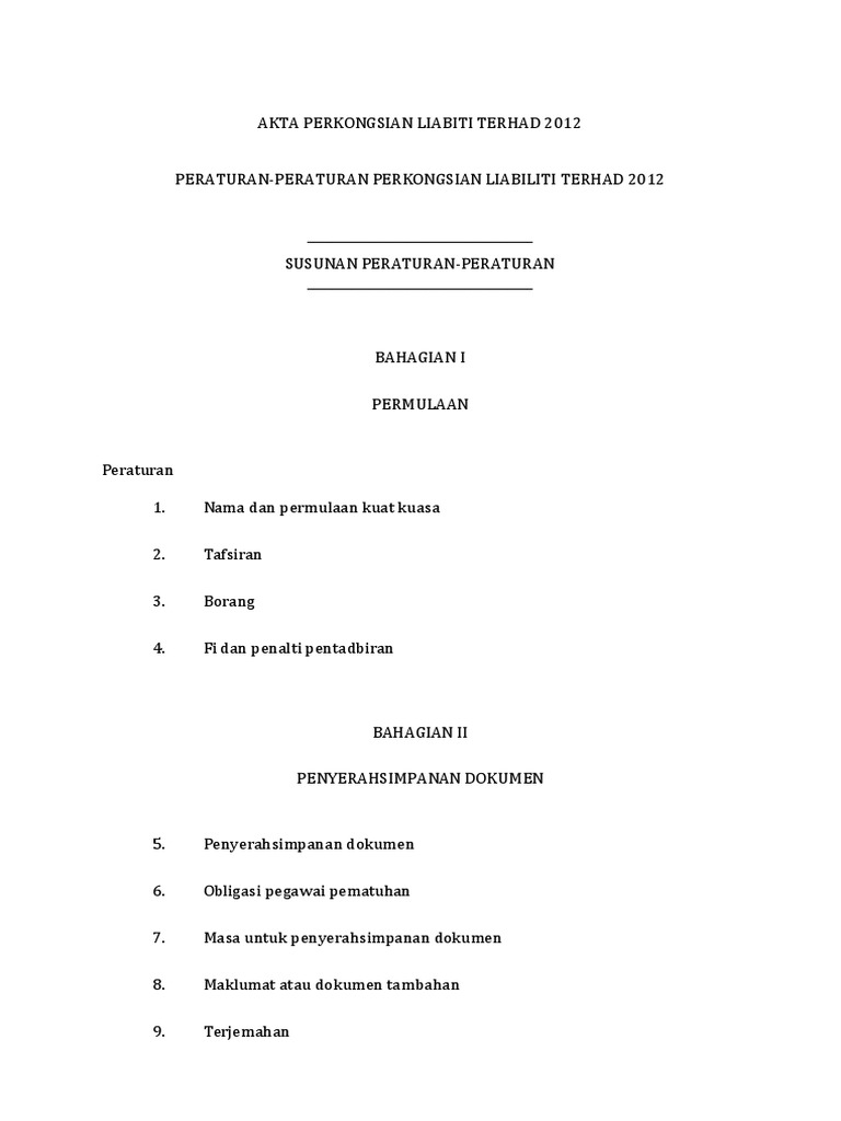 Garis Panduan Am Untuk Perkongsian Liabiliti Terhad Dan Perkara
