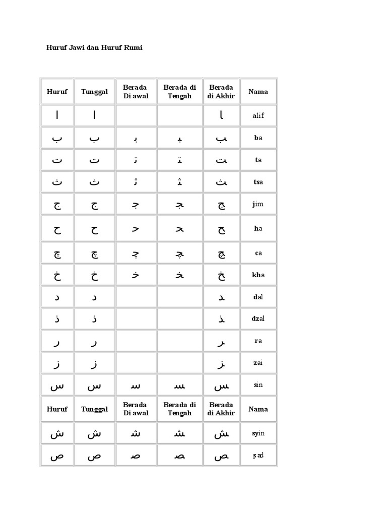Padanan Huruf Jawi Dan Rumi