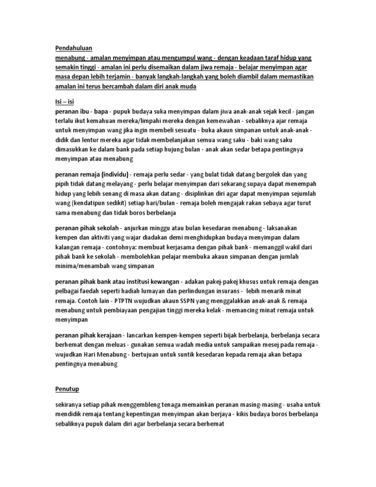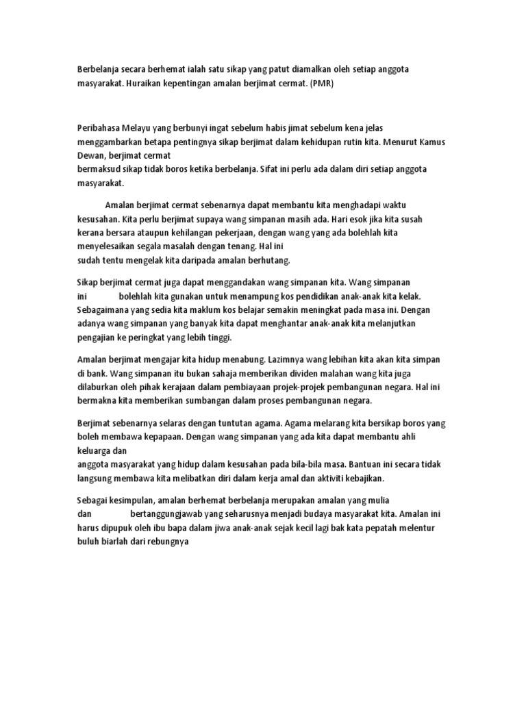 Contoh Karangan Spm Amalan Berjimat Cermat