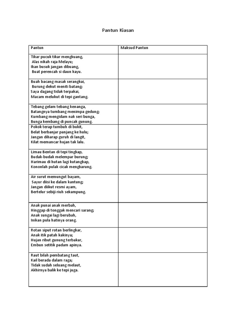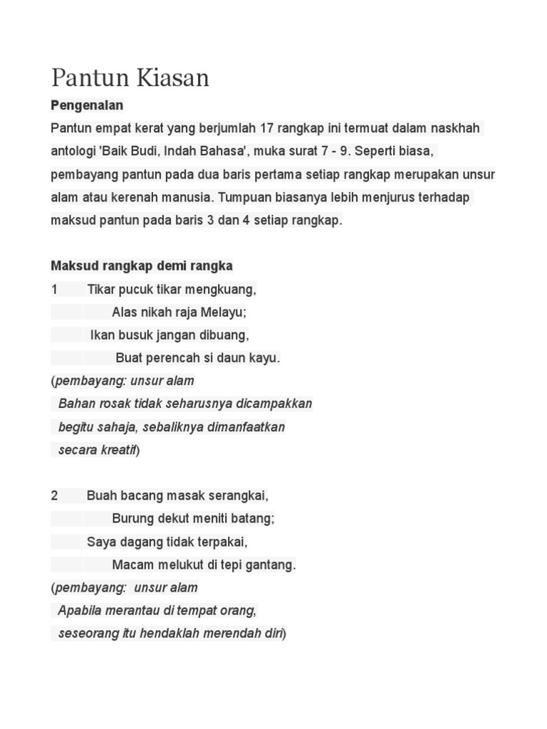 Puisi Tradisional Pantun Kiasan