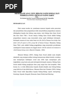 Memahami Asal Usul Bidang Sains Sosial Dan Perbezaannya Dengan Sains Tabi 5b1 5d Pdf