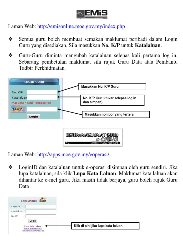 E Operasi Login Sistem Kemaskini Maklumat Guru Kpm 2020