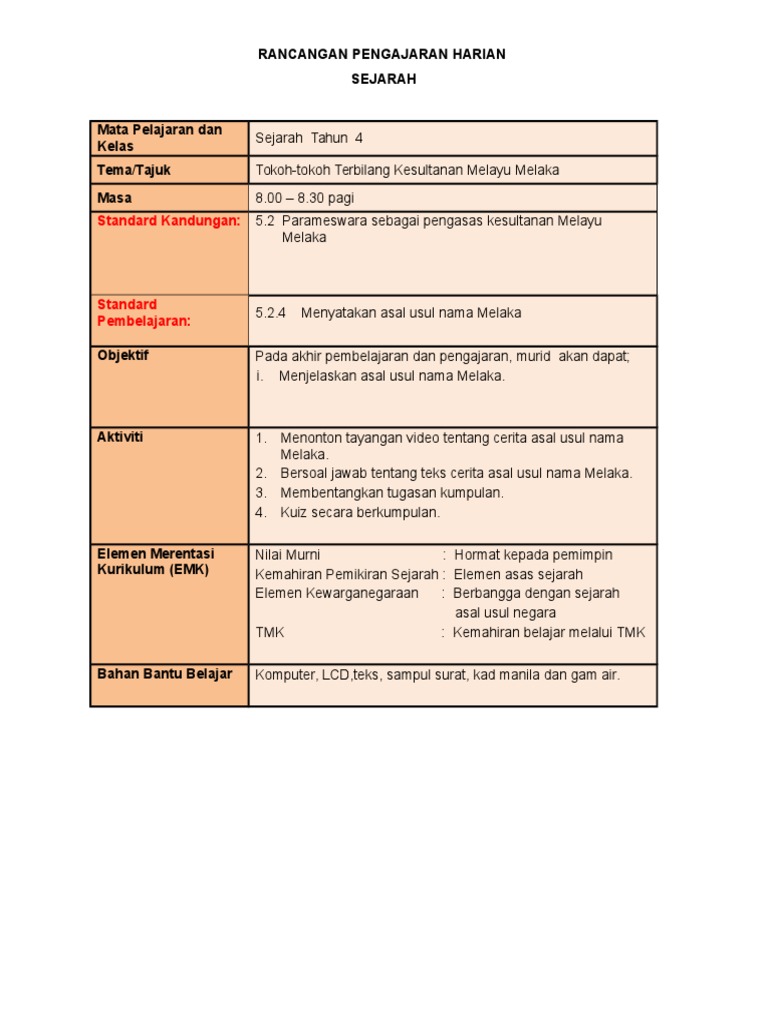 Dokumen Tips Rph Tokoh Terbilang Melayu Melaka Sejarah Tahun 4 Beh
