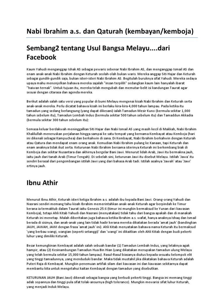 Rahsia Bangsa Melayu Keturunan Nabi Ibrahim As Jalan Akhirat