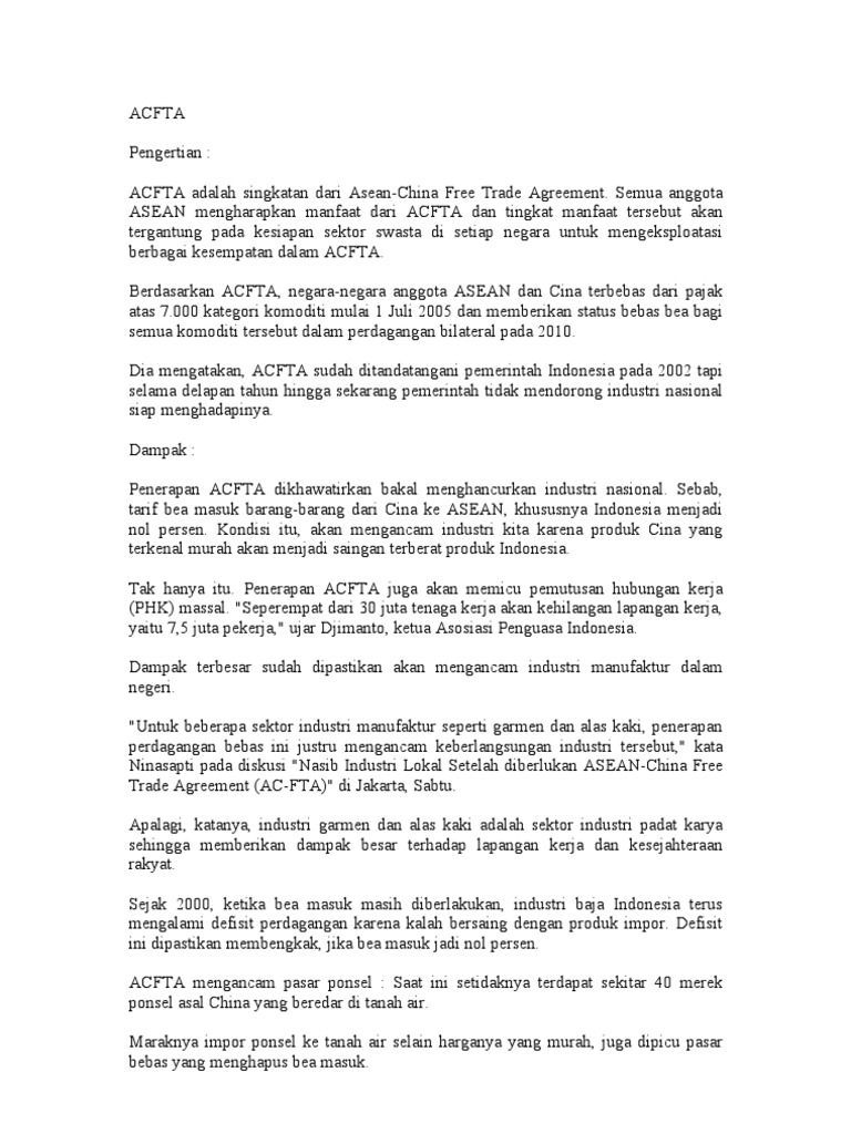 Pdf Eksistensi Perjanjian Asean China Free Trade Area Acfta Dan Dampaknya Bagi Perlindungan Usaha Mikro Kecil Menengah Umkm