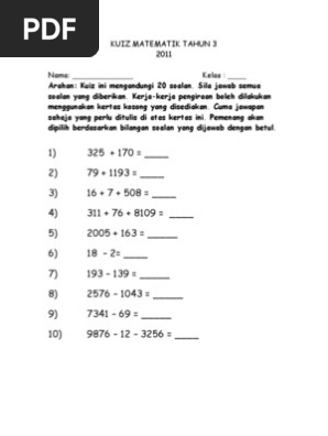 Doc Soalan Kuiz Matematik Tahun 3 Mohd Syahmi Samsudin Academia Edu