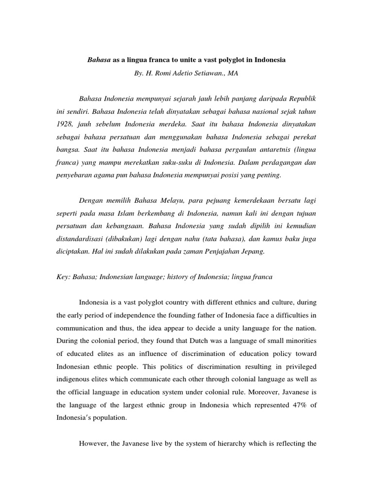 Terbaru Bahasa Indonesiasebagai Lingua Franca