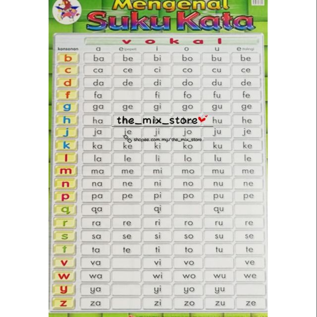 Clear Stock Suku Kata Educational Poster For Kindergarden Ready Stock Shopee Malaysia