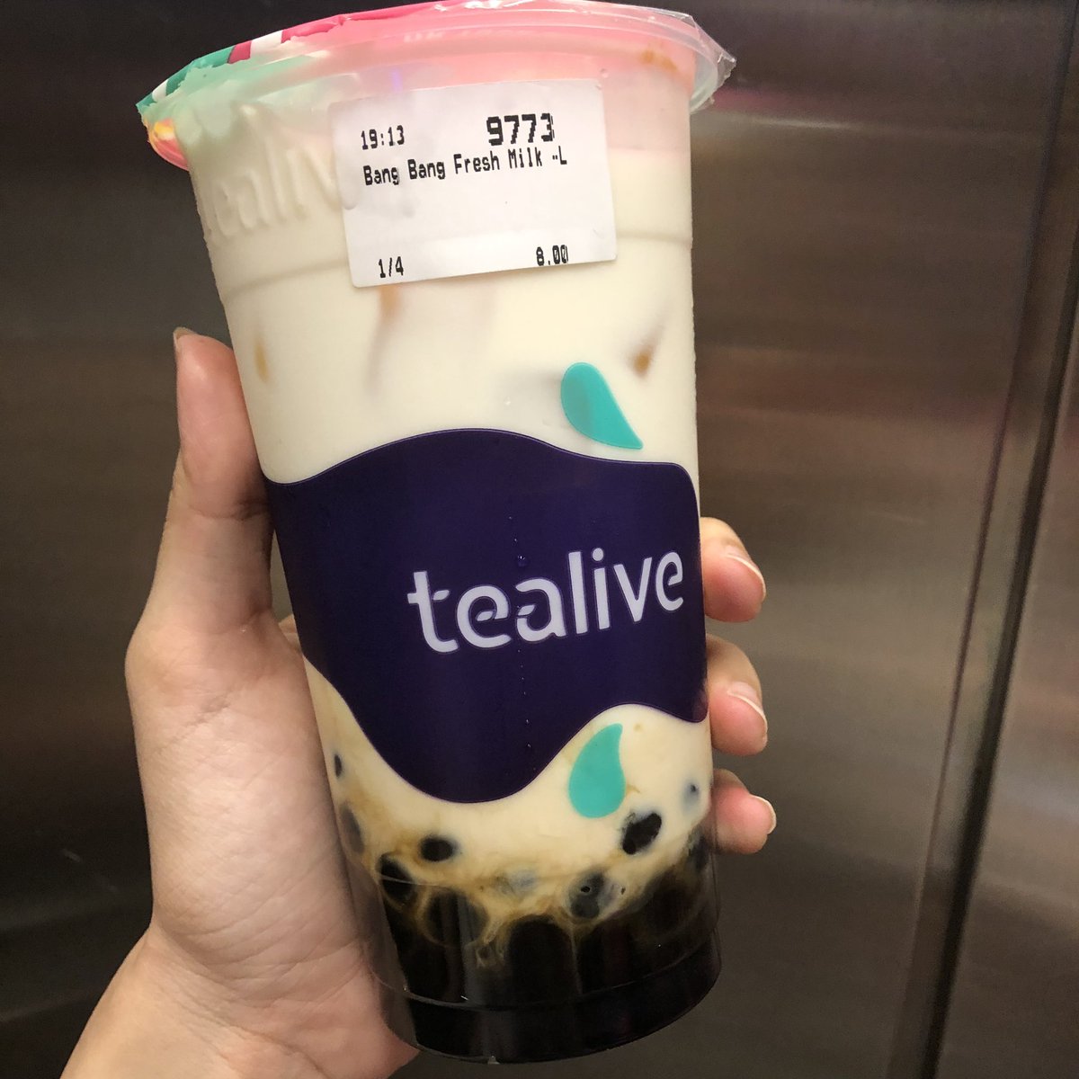 Bang bang coffee with brown sugar warm pearls. Bang bang fresh milk with brown sugar warm pearls. Tealive signature bang bang.