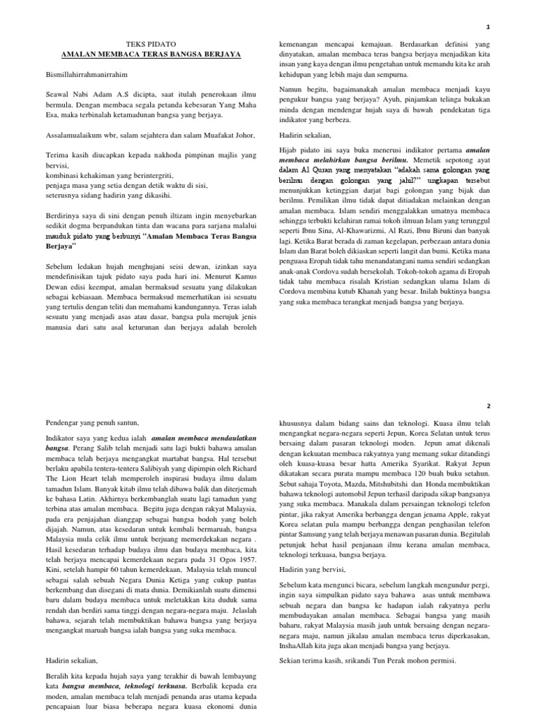 Pidato 2017 Amalan Membaca Teras Bangsa Berjaya