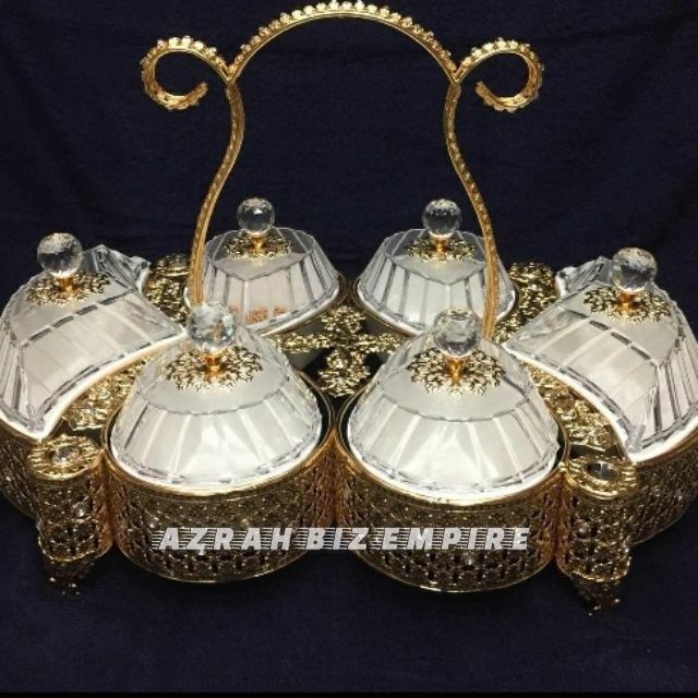 Exclusive 13pcs Gold Porcelain Candy Dish With Gold Rack Deraja Bekas Kuih Raya Rak Emas Balang Kuih Kaca Diraja Shopee Malaysia