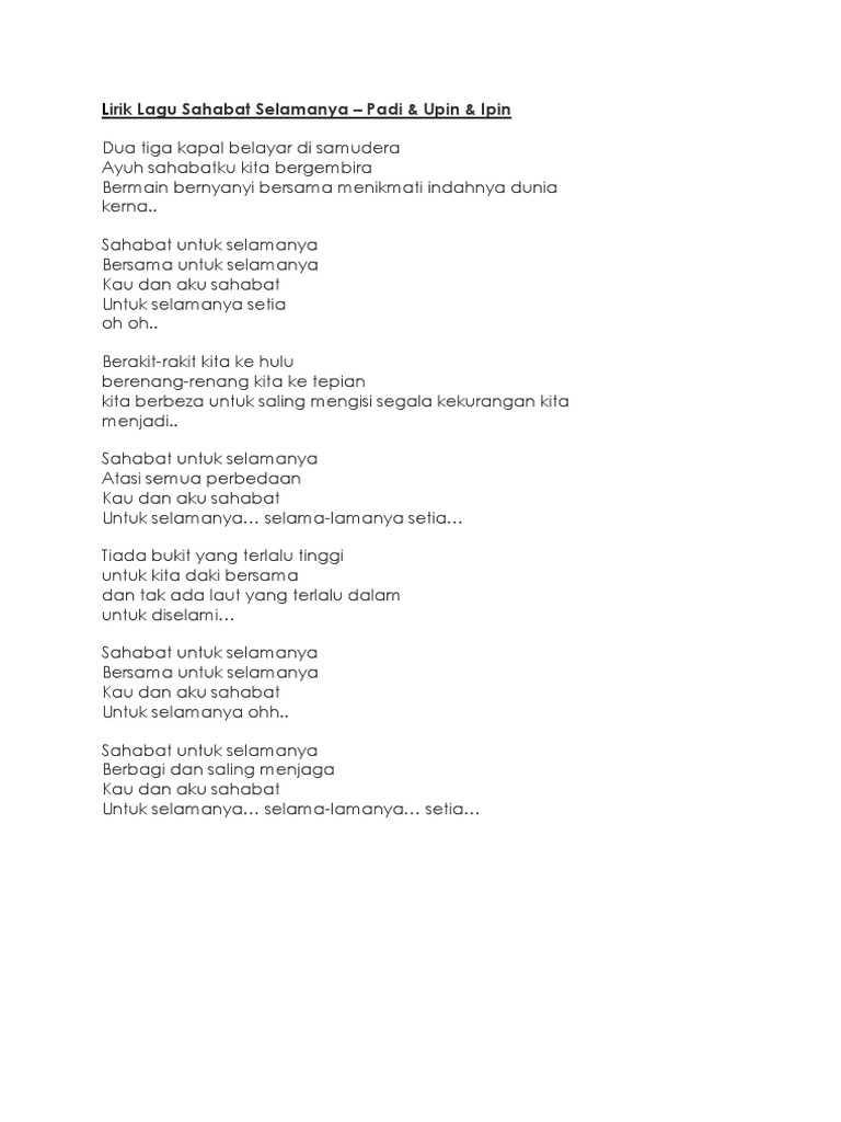 Lirik Lagu Sahabat Selamanya