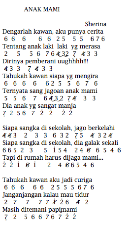 Not Angka Pianika Lagu Sherina Anak Mami Ost Petualangan Sherina Recorder Keyboard Suling Chord Piano
