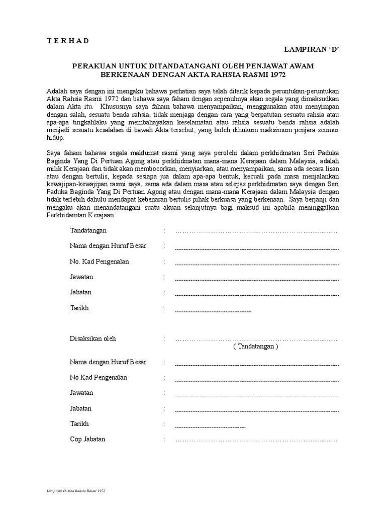 Borang Lampiran D Akta Rahsia Rasmi 1972