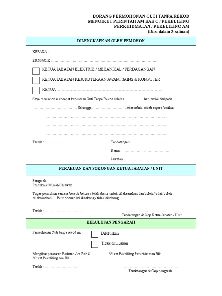 Borang Permohonan Cuti Tanpa Rekod Ctr Jelas Perintah Am Bab Pdf4pro