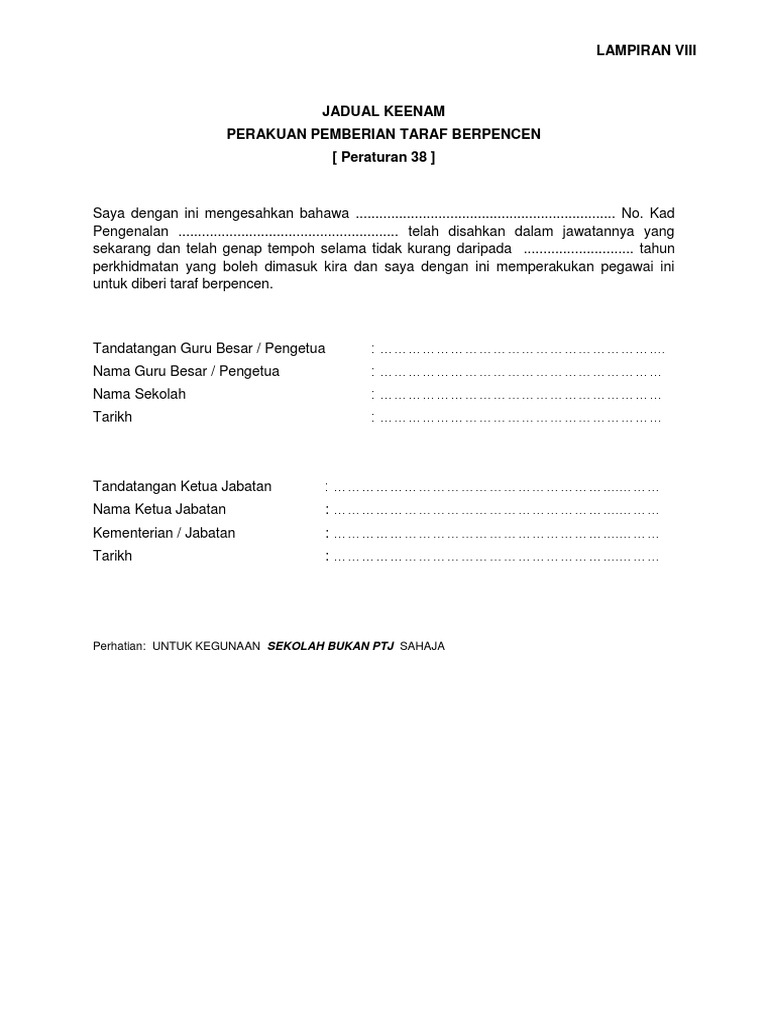 Jadual Keenam Borang Pemberian Taraf Berpencen