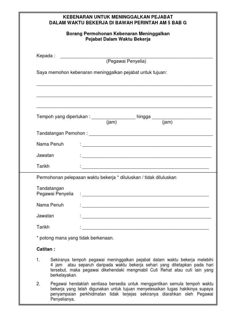 5 Borang Meninggalkan Pejabat Pdf Document