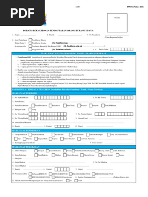 Borang Permohonan Pendaftaran Orang Kurang Upaya