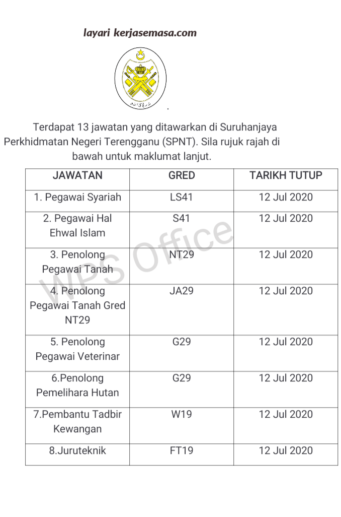 Permohonan Jawatan Kosong Suruhanjaya Perkhidmatan Negeri Terengganu Spnt Kerjasemasa