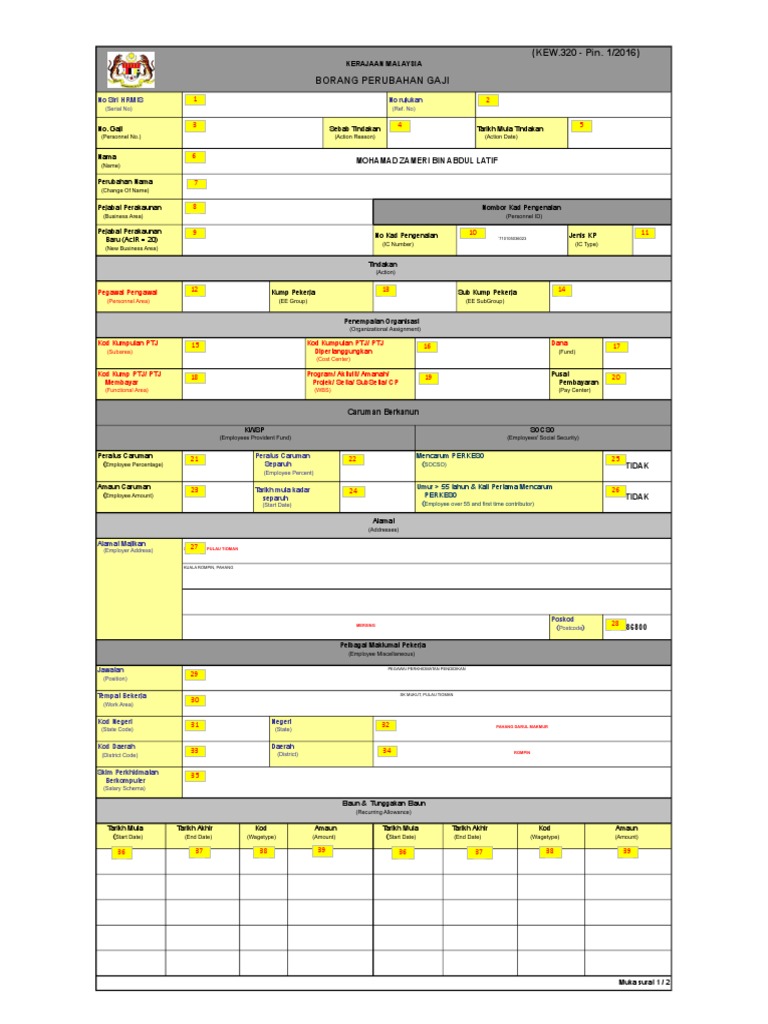 Borang Perubahan Gaji Kew 320 Pin 1 2016
