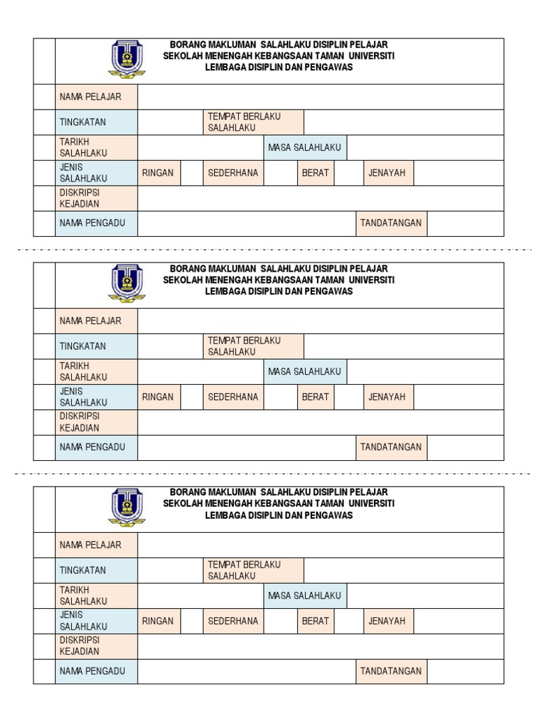 Borang Rekod Kesalahan Disiplin Murid Sk Bur