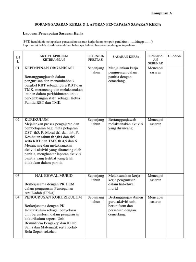Doc Lampiran A Borang Sasaran Kerja Laporan Pencapaian Sang Kaya Academia Edu