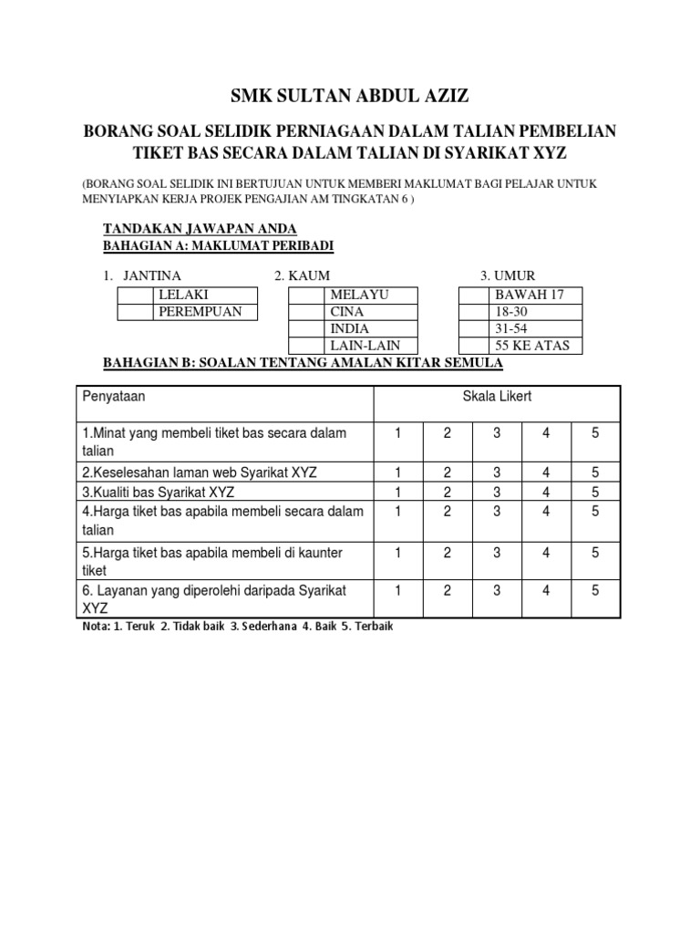 Contoh Borang Soal Selidik 2020 Banyak Contoh Portal Malaysia