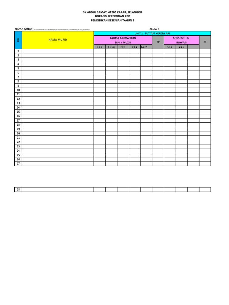 Contoh Borang Transit Bm Tahun 1