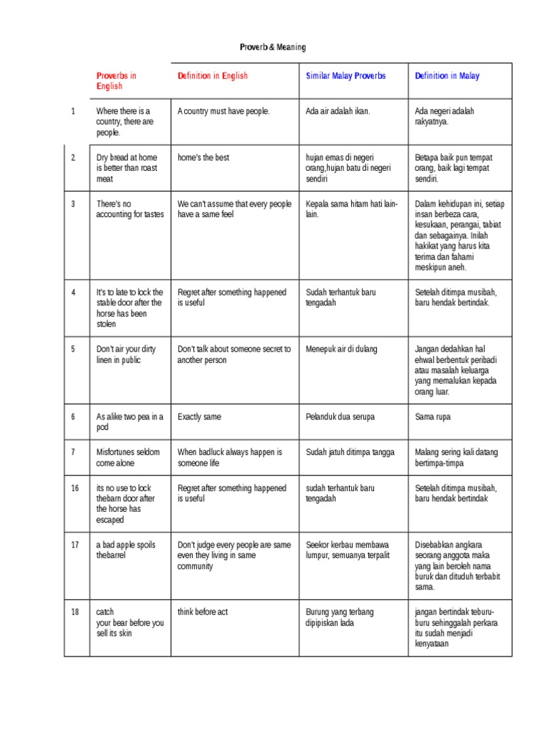 Kerul Net Several English Proverbs And The Malay Pair