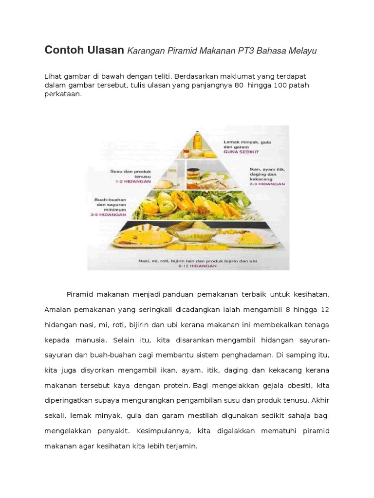 Contoh Ulasan Karangan Piramid Makanan Pt3 Bahasa Melayu