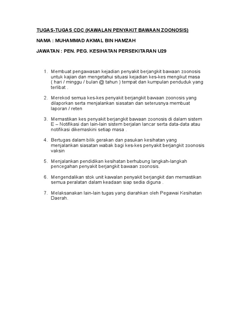 Senarai Tugas Ppkp Pka Unit Kawalan Penyakit Berjangkit