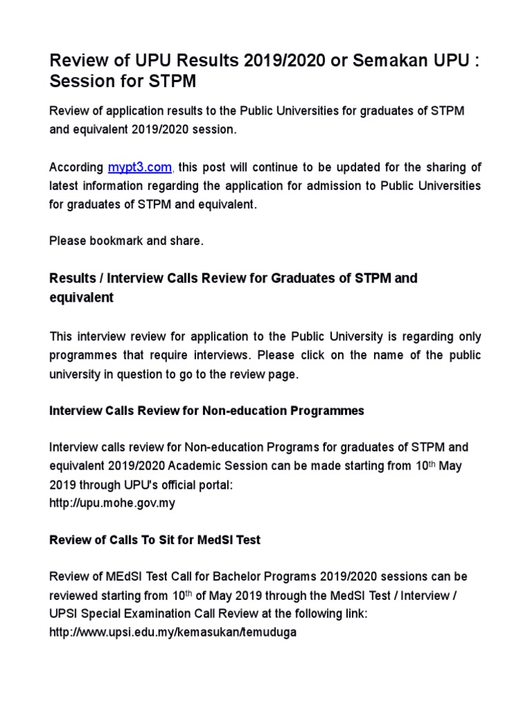 Upuonline Results For Lepasan Stpm Setaraf 2019 20 Out 31st July 2019 At 12 Pm