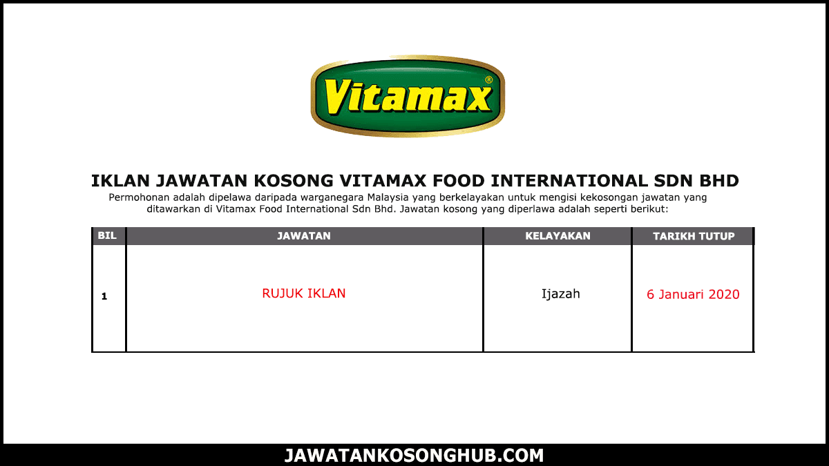 Jawatan Kosong Terkini Vitamax Food International Sdn Bhd