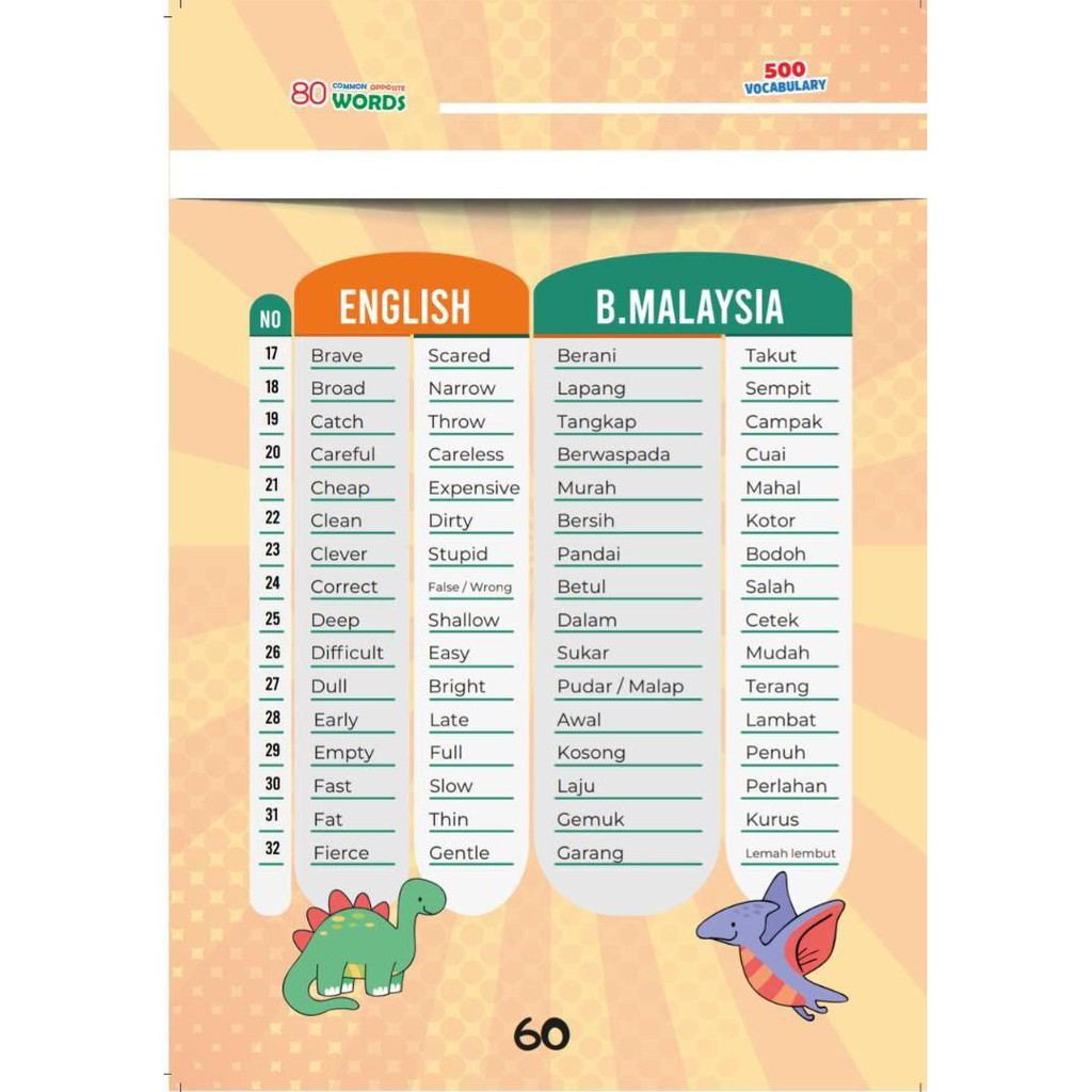 Buku 500 Vocabulary Words For Kids Belajar Bahasa Inggeris Dalam Bahasa Melayu Free Book Dictionary Shopee Malaysia