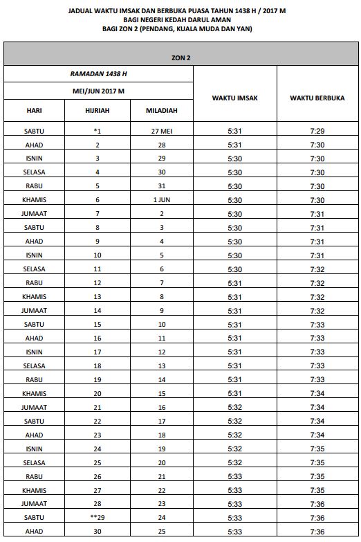 Jadual Waktu Berbuka Puasa Dan Imsak Kedah 2017 Kisah Viral Dunia