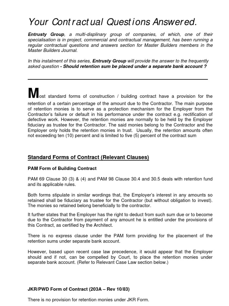 Retention Sum In Construction Contracts Thomas Philip Advocates And Solicitors Kuala Lumpur Malaysia